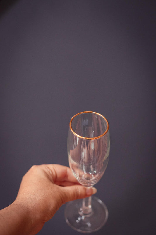 Set of 4 Gilt Rim Champagne Glasses with Hexagonal Stem - Vintage Barware Glassware