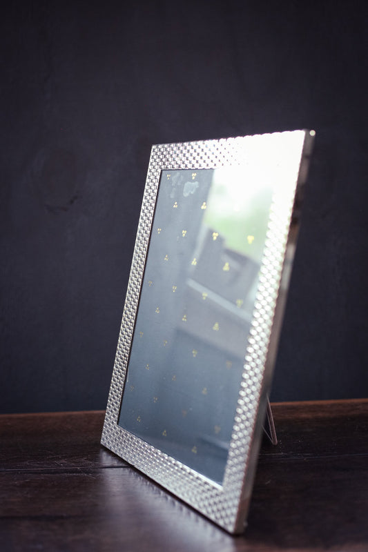 Large Basketweave Texture Chrome Picture Frame - Vintage 8x10 Photo Frame