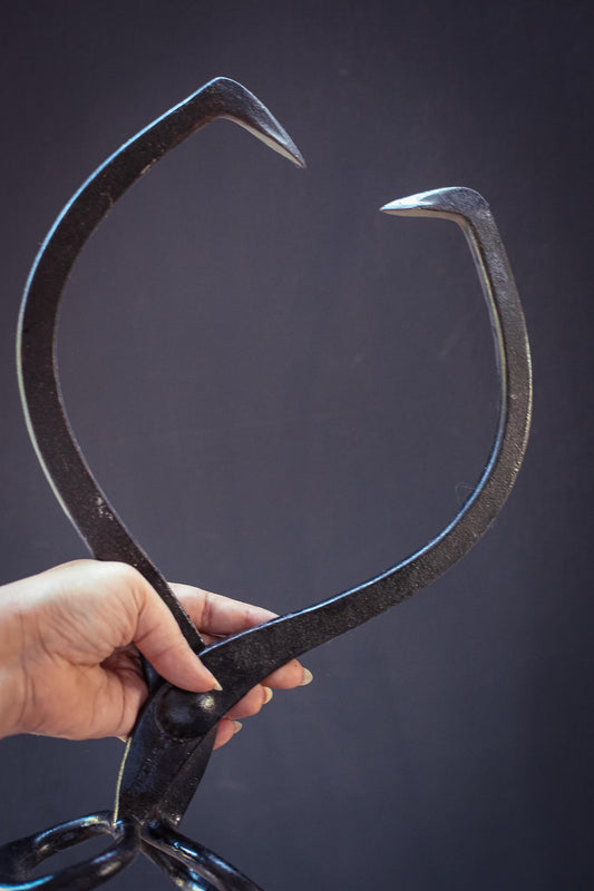 Large Black Iron Ice Block Tongs - Vintage Iron Metal Tool Ice Tongs