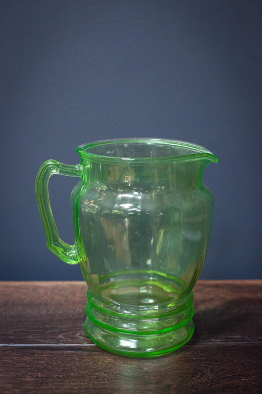 Large Green Uranium Glass Pitcher 8.5" Tall - Vintage Vaseline Glass Water Pitcher