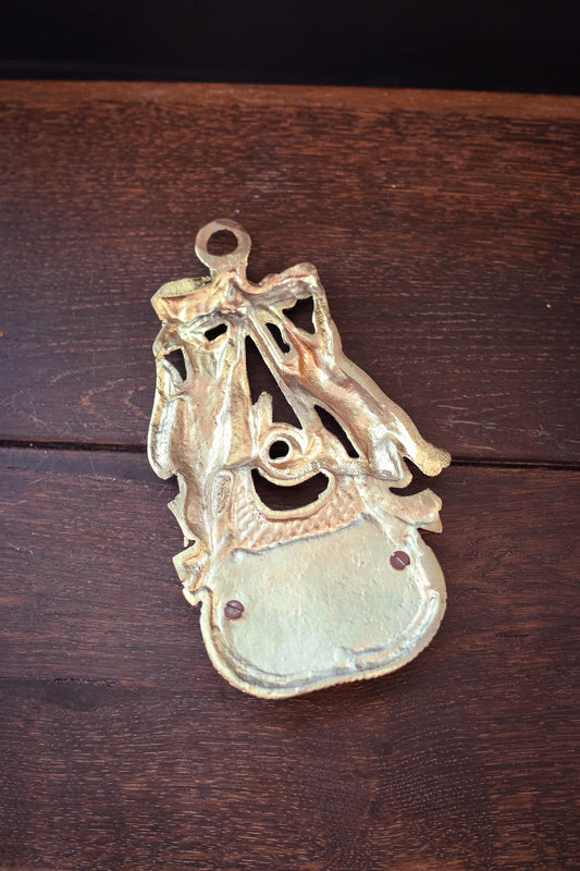 Metal Match Holder Hunting Scene - Vintage Gold Tone Aluminum