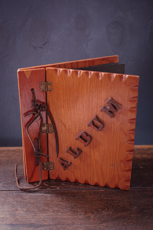 Wood Photo Album with Leather Binding - Vintage Wooden Album Cover