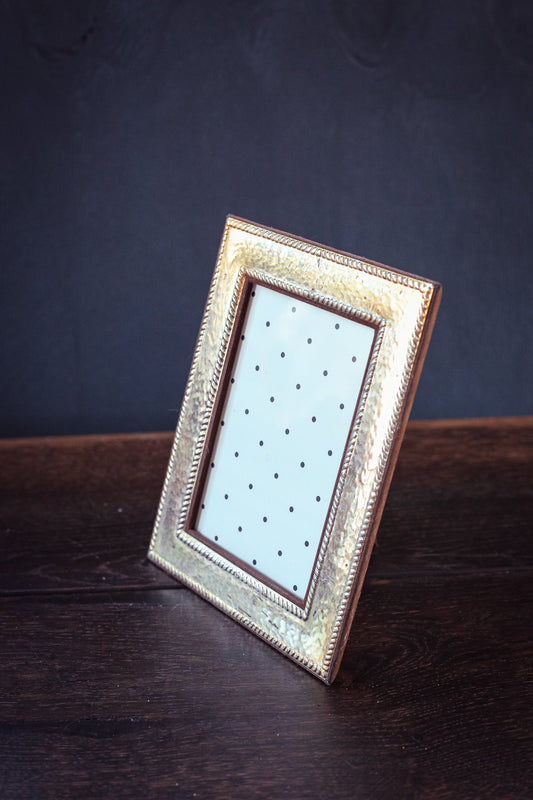 Brass and Microsuede Picture Frame - Vintage Hammered Brass Photo Frame