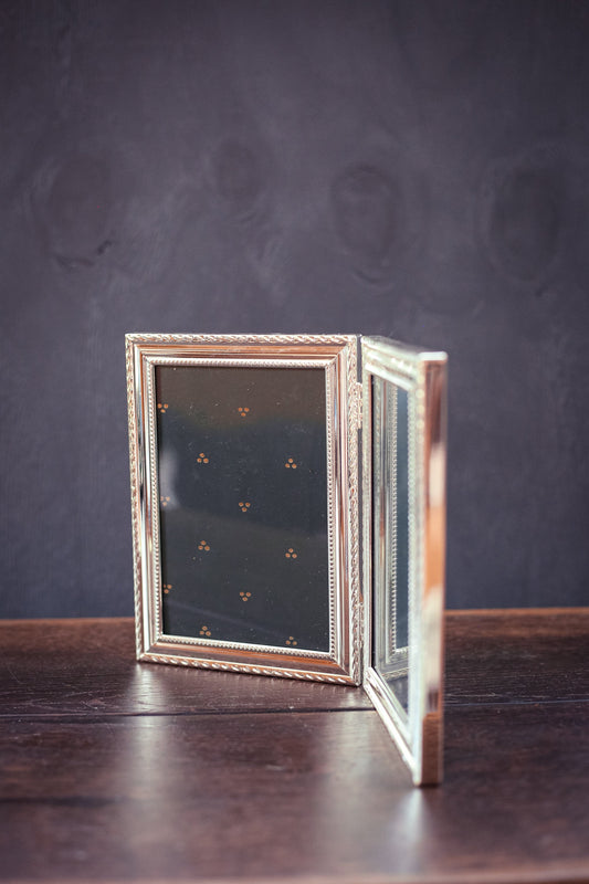 Folding Tabletop Chrome Picture Frame - Vintage Photo Frame
