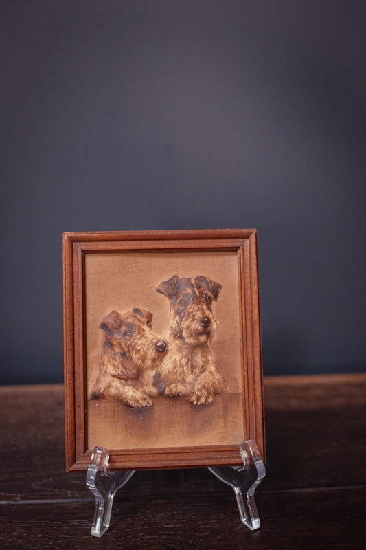 Framed Dog Portrait Embossed Raised Print - Vintage Wood Framed Mabel Gear Dog Art Print