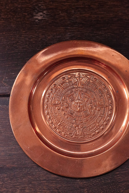 Vintage Mayan Motif Copper Wall Plate - Pressed Copper Wall Hanging