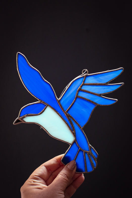 Stained Glass Blue Bird Sun Catcher - Vintage Stained Glass Suncatcher