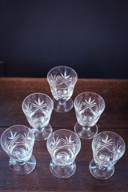 Set of 6 Thomas Webb Crystal Wine Glasses - Vintage Claret Wine Glass Set London Pattern by Thomas Webb England