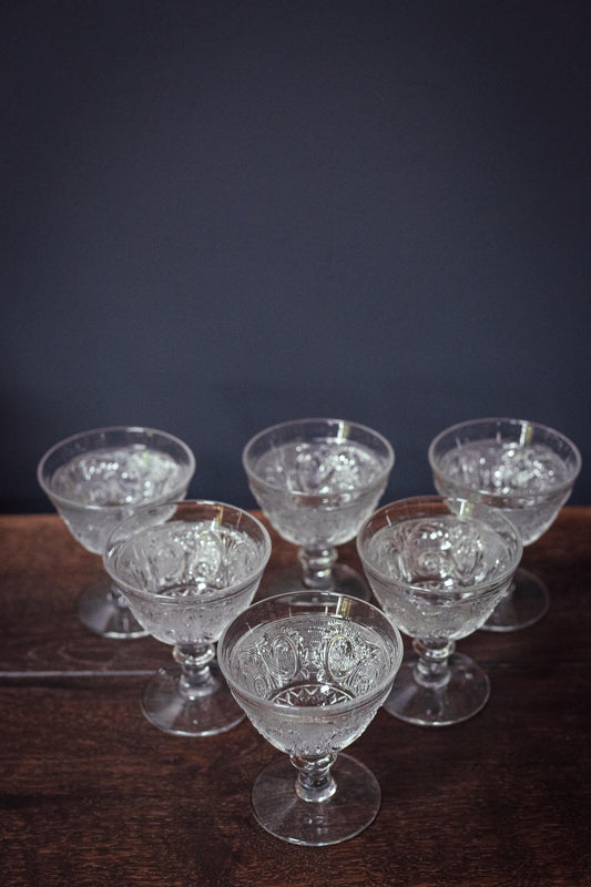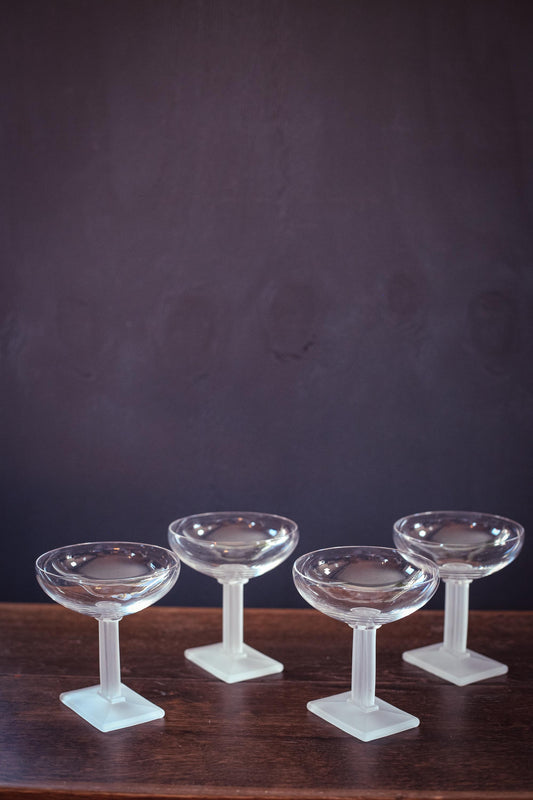 Set of 4 Architectural Frosted Stem Coup Glasses - Vintage Champagne Coupes