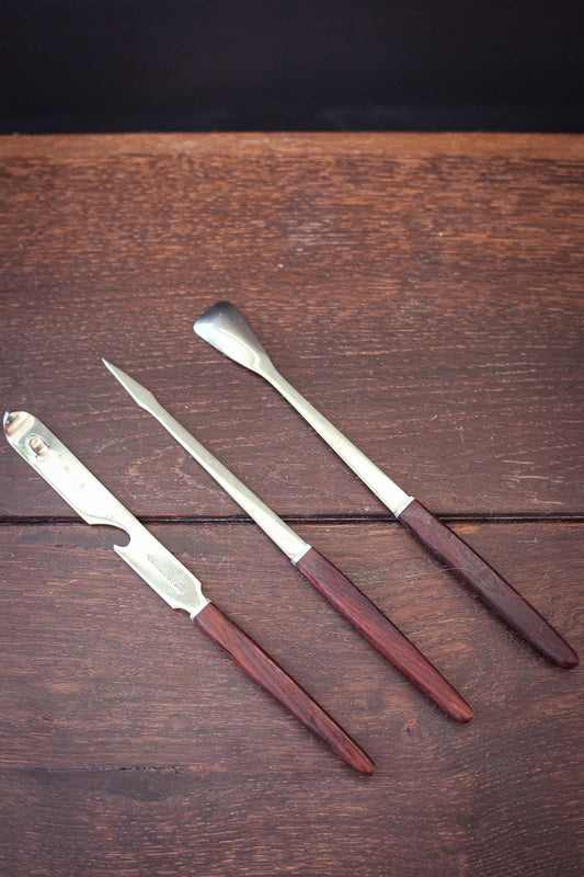 Set of 3 Rosewood & Stainless Steel Midcentury Modern Japanese Bar Tools - Vintage MCM Bar Tools