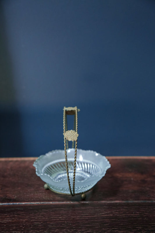 Cut and Frosted Glass Bowl with Brass Basket Style Base