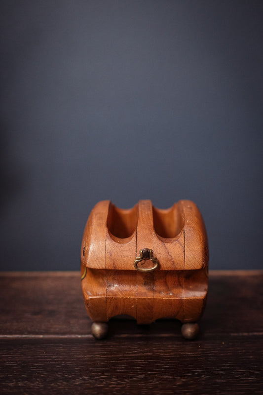 Vintage Wood Pulley Knapkin/Coaster Holder - Brass & Wooden Pulley with Handpainted Initials GR and Crown