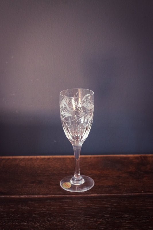 Carved & Etched Crystal Jasmine Wine Glass - Royal Brierly Made in England Carved Glass