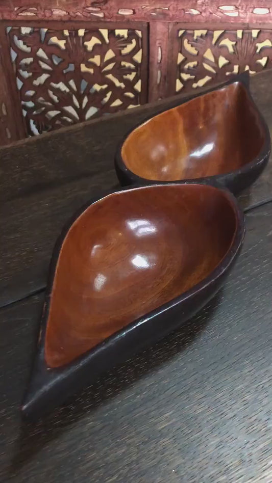 Vintage Hand Carved Wood Divided Bowl - Midcentury Modern Wooden Tableware/Barware Server