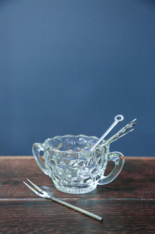 Geometric Cut Glass Bowl with Handles - Vintage Fostoria American Clear Sugar Bowl with Handles