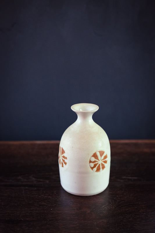 Hand Thrown Ceramic Sake Jar White and Yellow - Vintage Otagiri Ivory Sake Container with Sunburst Design made in Japan