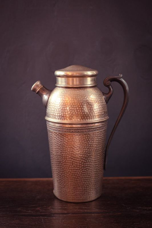 Hammered Silverplate Cocktail Shaker with Art Deco Details - Vintage Silvercraft Cocktail Pitcher with Handle & Pour Spout