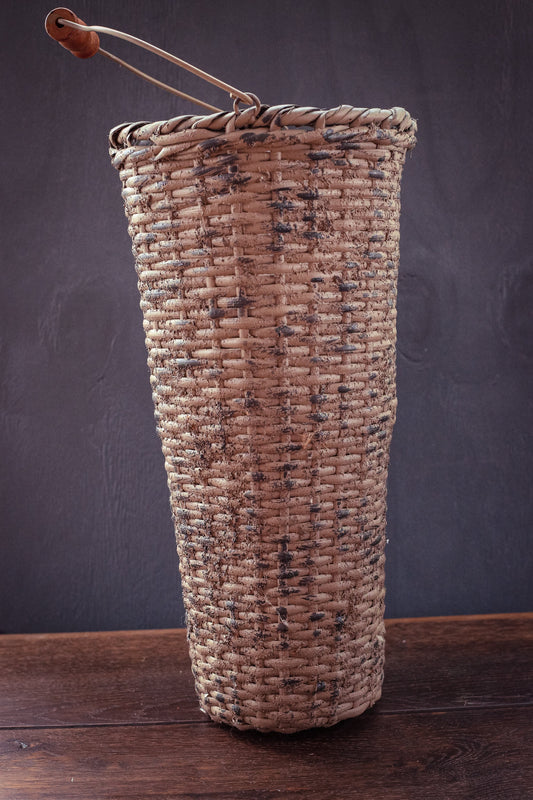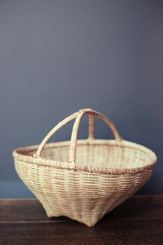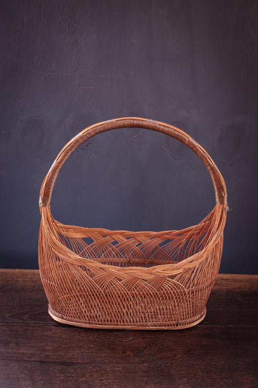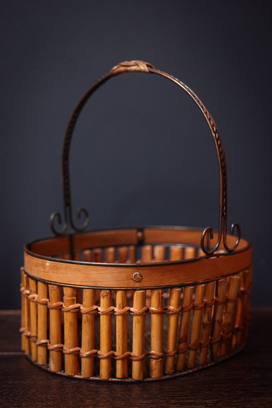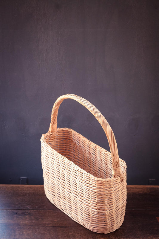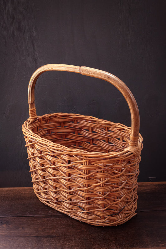 Narrow Oval Woven Reed Basket with Handle - Vintage Reed Basket
