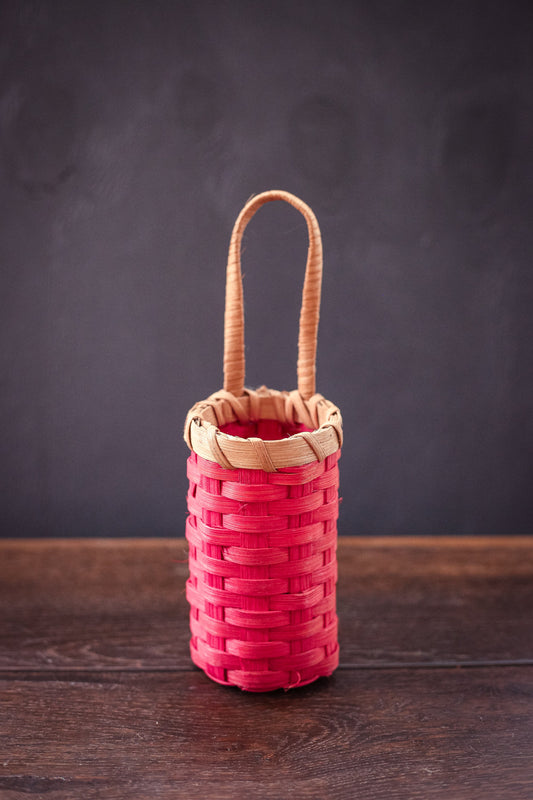 Red Dyed Wood Strip Wall Basket - Vintage Decorative Basket