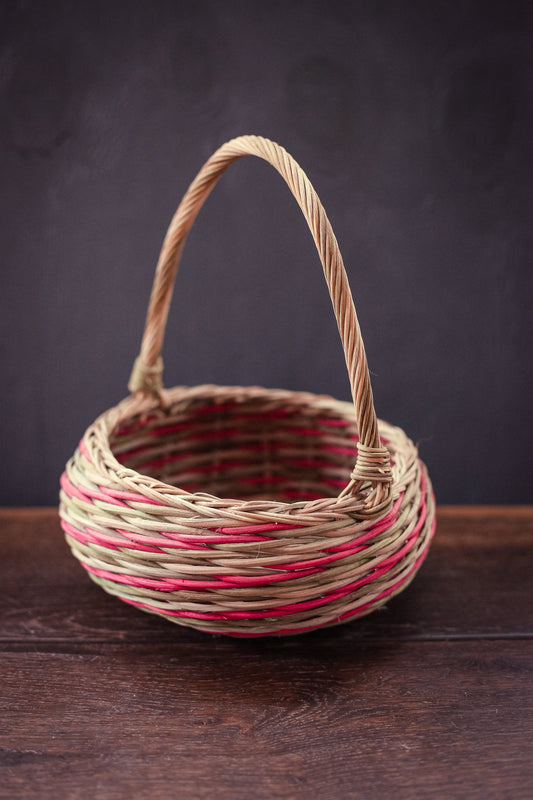 Multi-Color Round Wicker Basket with Handle - Vintage Holiday Decorative Wicker Basket