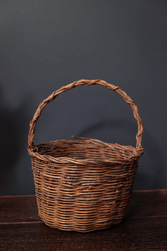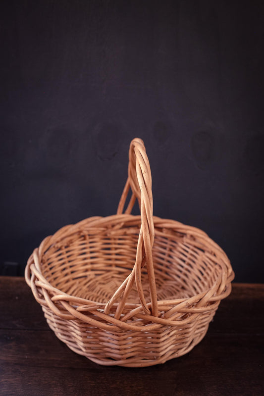Round Flat Bottom Willow Basket with Handle - Vintage Willow Round Gathering Basket