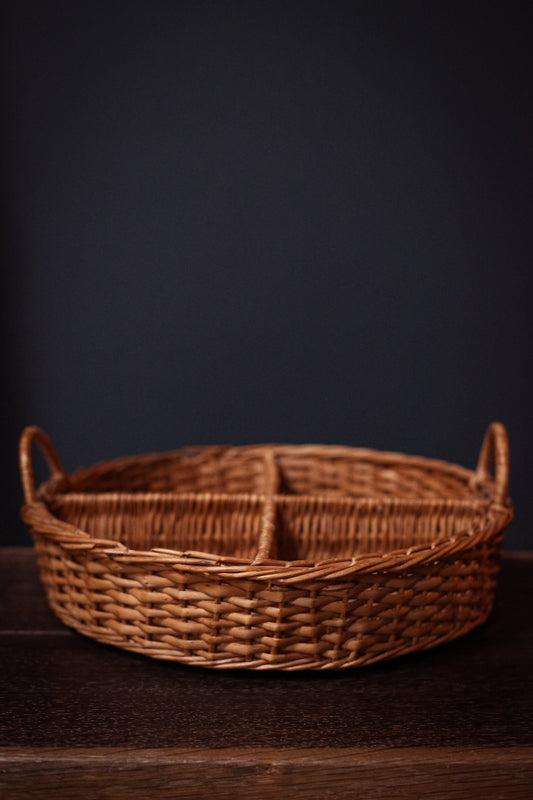 Divided Console Basket with Handles - Round Wicker/Rattan Modern Farmhouse Basket