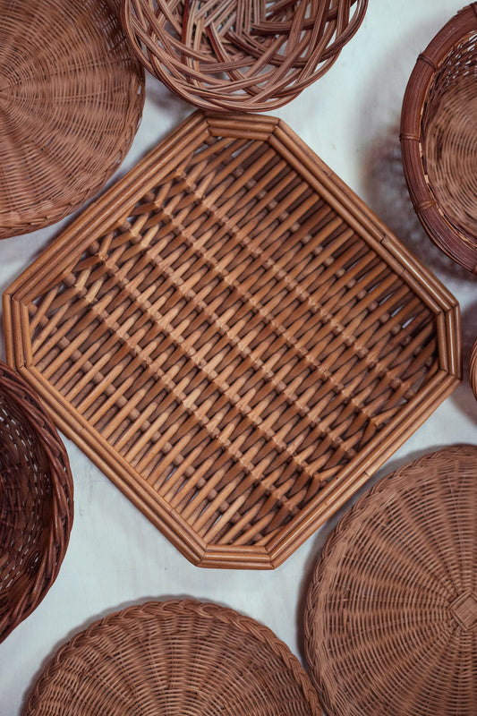 Vintage Wall Baskets, Rope Wreath, and Crate Lid - Eclectic Vintage Round Wall Basket Decor