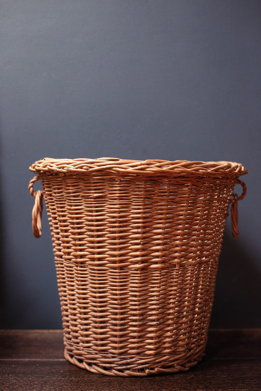 Wicker Rattan Hamper Basket with Ring Handles - Vintage Farmhouse Wicker Wastebasket/Laundry Basket