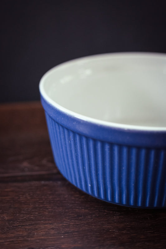 Large Cornflower Blue Porcelain Soufflé Dish - Vintage Bakeware Large Porcelain Souffle