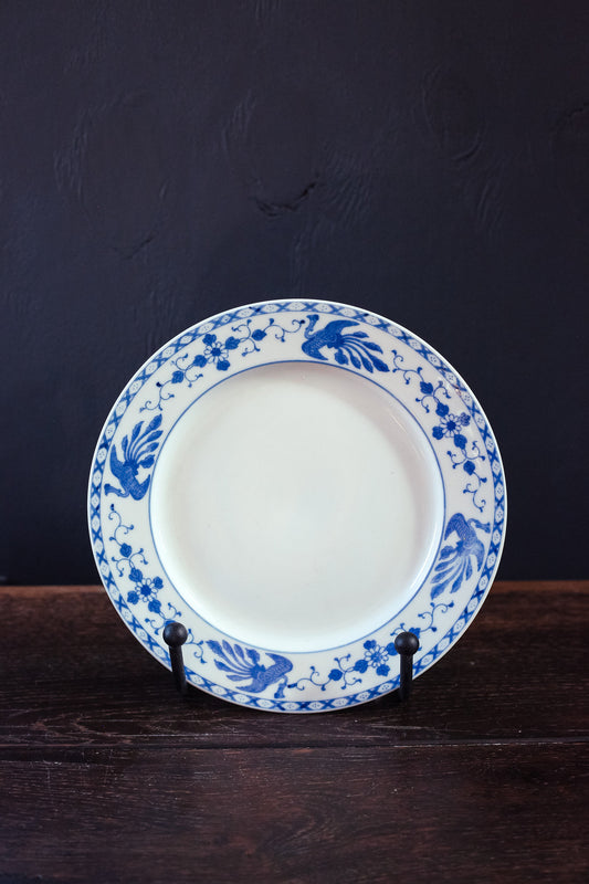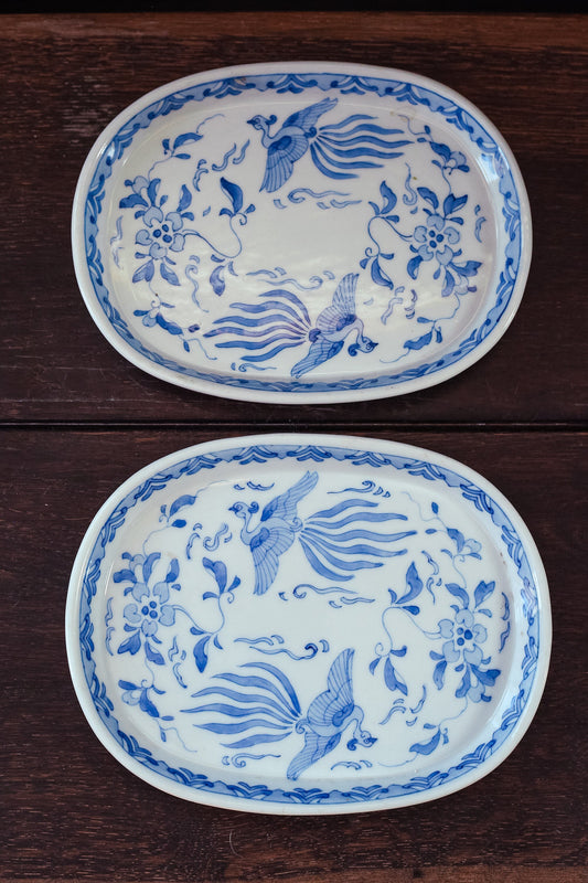 Pair of Blue White Phoenix Porcelain Low Dishes - Vintage Japanese Porcelain Serving Plates