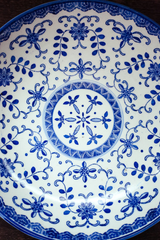 Japanese Hand Painted Blue & White 11" Serving Plate - Antique Blue White Porcelain Plate late 1800's SeiJi KaiSha Pure Water Company