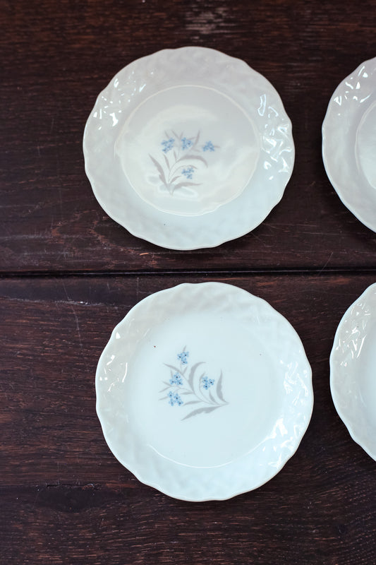 Small Porcelain Plates with Blue & Silver Flowers - Set of 4 Vintage Petite Porcelain Dishes