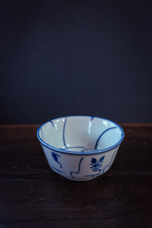 Hand Painted Blue and White Chinese Soup Bowl - Vintage Hand Painted Ceramic Bowl