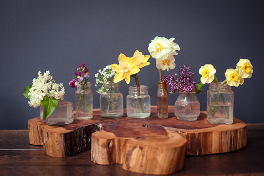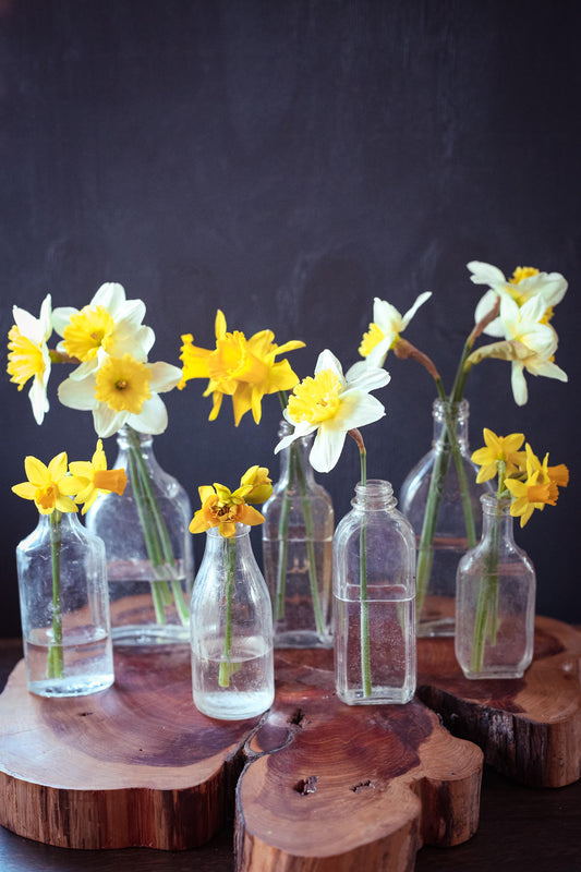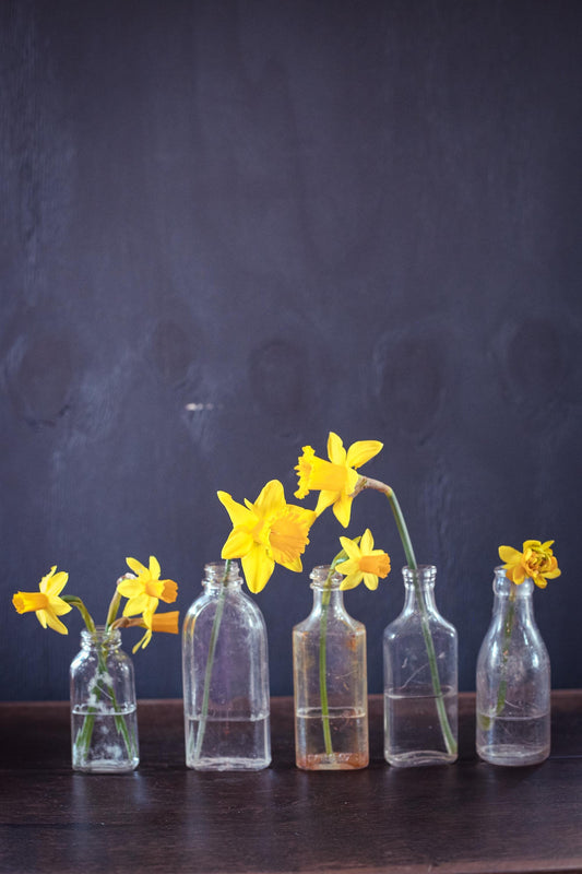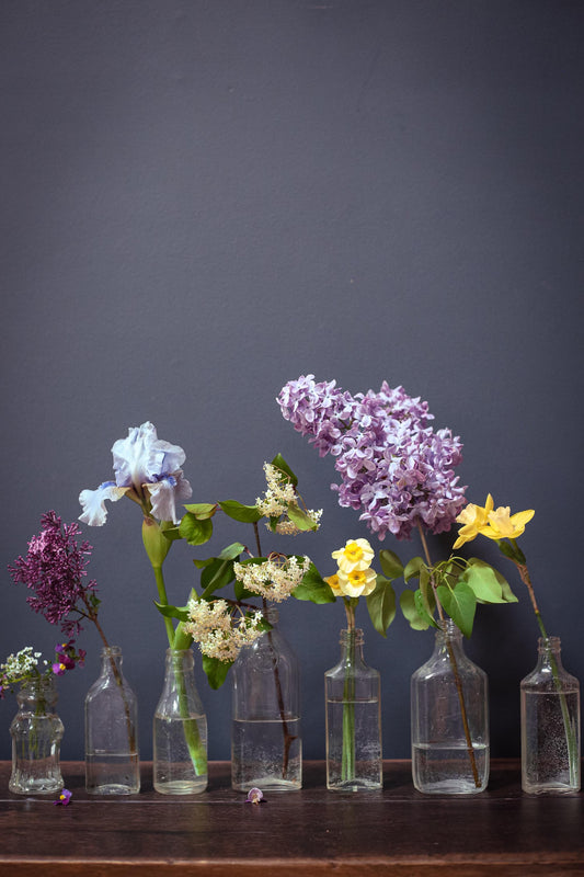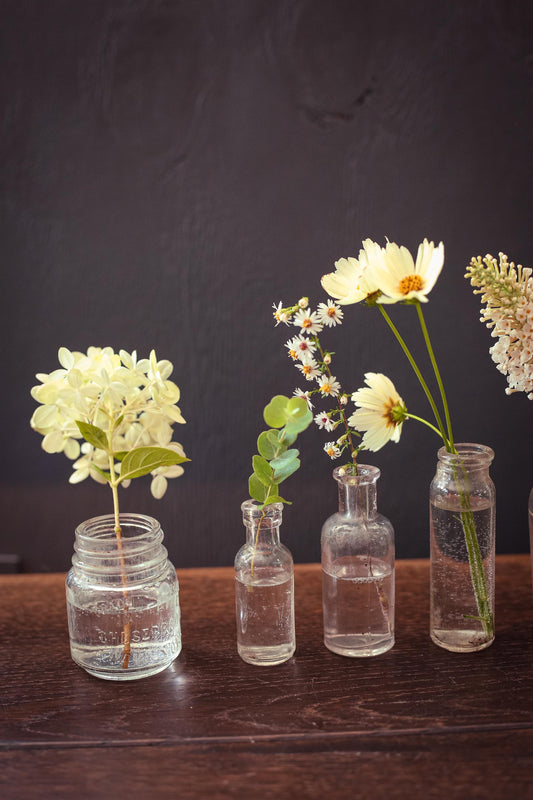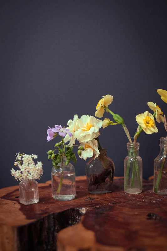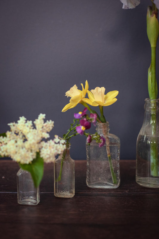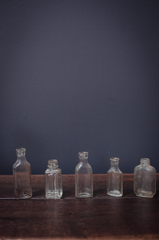 Set of 7 Small Glass Apothecary Bottles - Vintage Antique Clear Glass Bottle Bud Vases