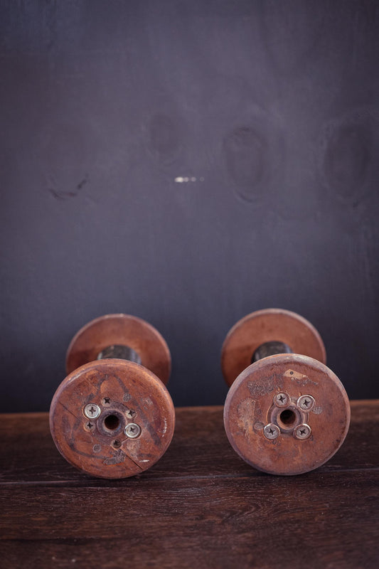 Pair of Wooden Spools with Plastic Thread - Vintage