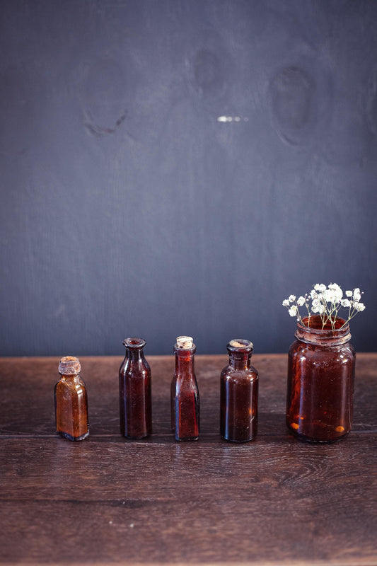 Brown/Amber Glass Bottle Set of 5 - Vintage Apothecary Bottle Grouping