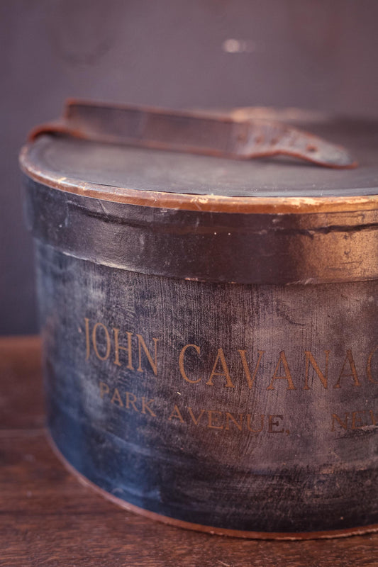 Antique Weathered John Cavanaugh Park Ave Hat Box - Vintage NY Milliner Hat Box