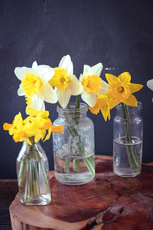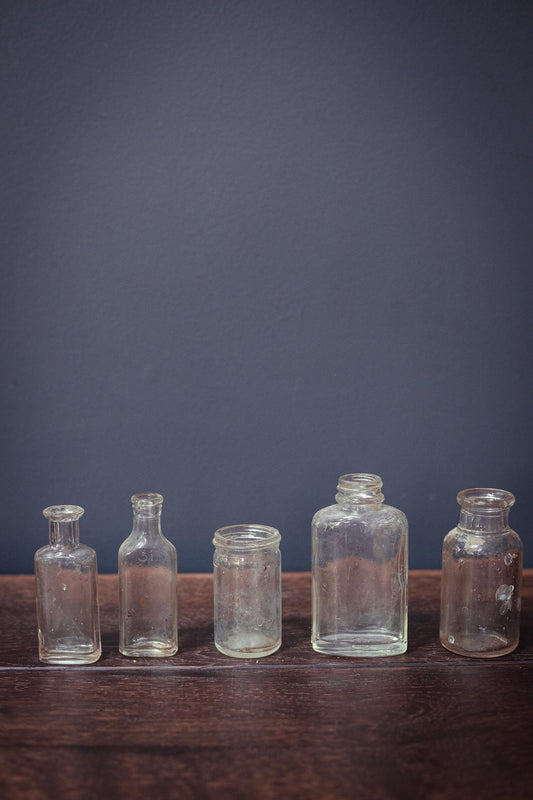 Set of 5 Clear Glass Apothecary Bottles - Vintage Antique Clear Glass Bottle Bud Vases