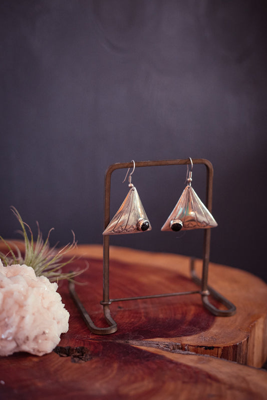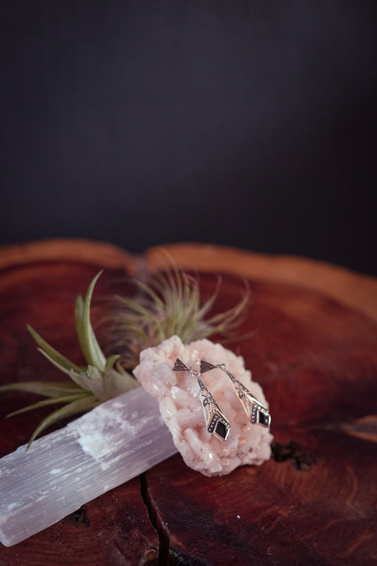 Sterling Silver and Onyx Triangle Drop Earrings - Vintage Silver Earring