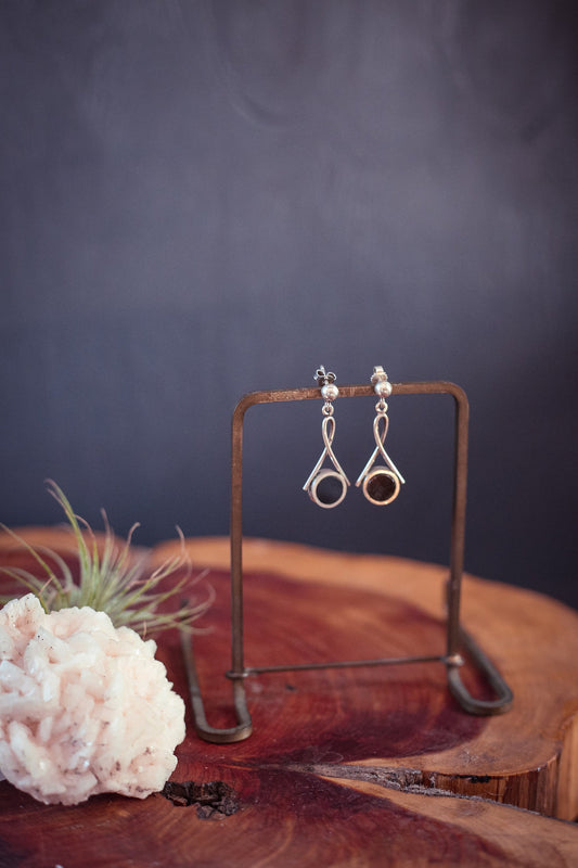 Onyx & Sterling Silver Pendant Earrings - Vintage Silver Earrings