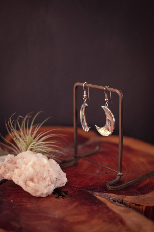 Alpaca Silver Crescent Moon Abalone Earrings - Vintage Mexican Silver Shell Earring