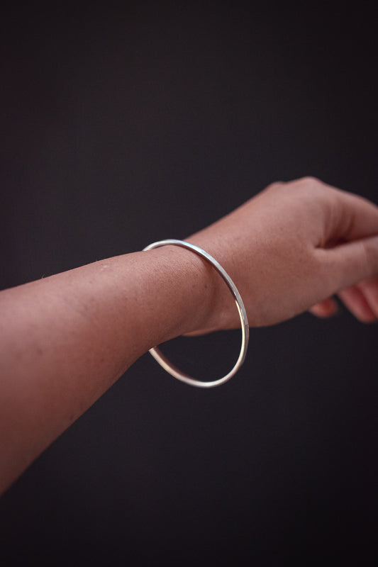 Sterling Silver Smooth with Braid Pattern Bracelet - Vintage Mexican Silver Bangle