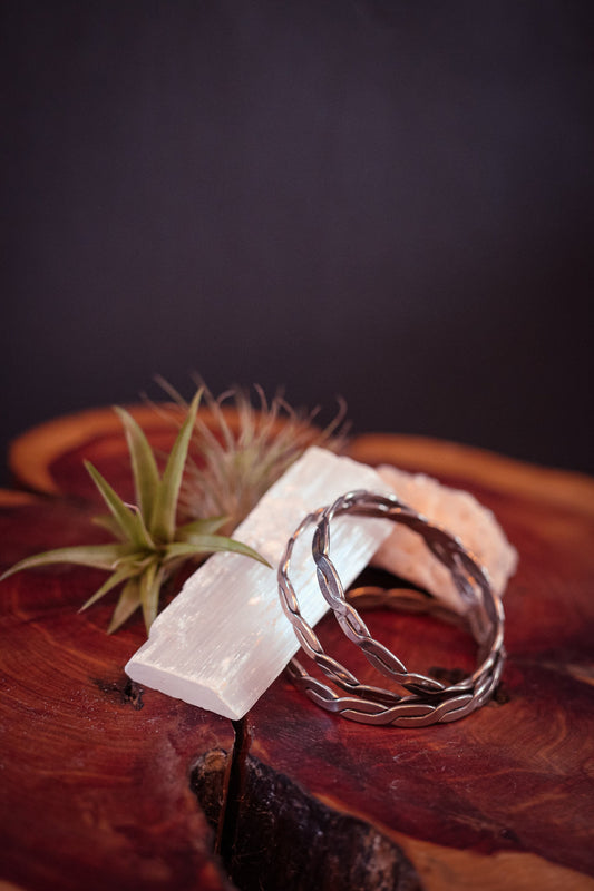 Sterling Silver Hammered Braid Twist Bracelets - Vintage Mexican Handmade Silver Bangles