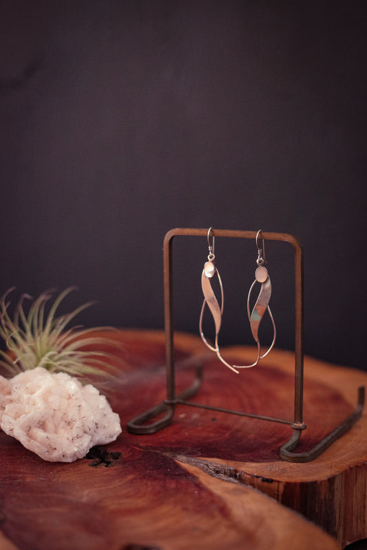 Sterling Silver Mother of Pearl Drop Earrings - Vintage Silver Delicate Earrings