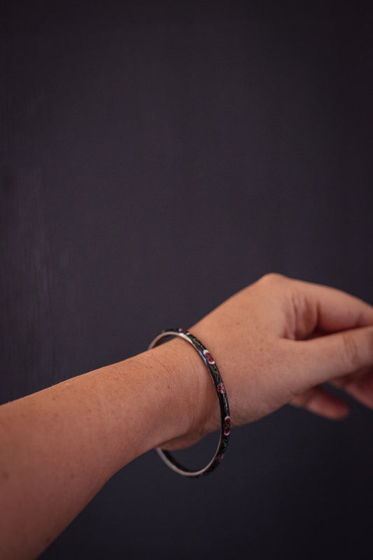 Black Brass Enamel Cloisonné Bracelet - Vintage Colorful Chinese Bangle