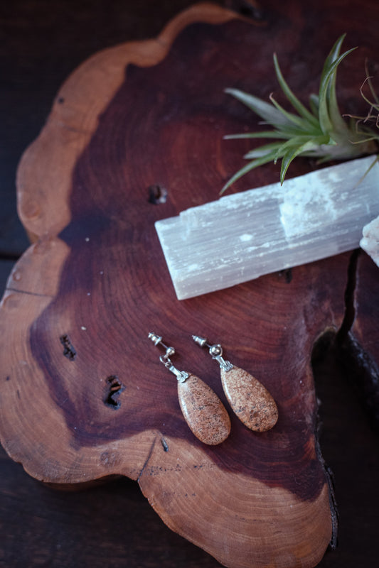 Jasper Tear Drop with Sterling Post - Vintage Estate Jewelry