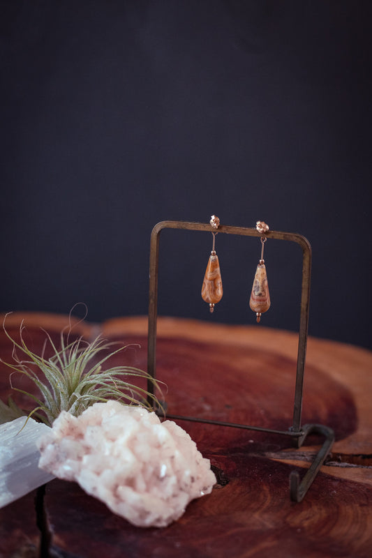 Honey Agate Tear Drop 14k GF Ball/Post Earrings - Vintage Estate Jewelry