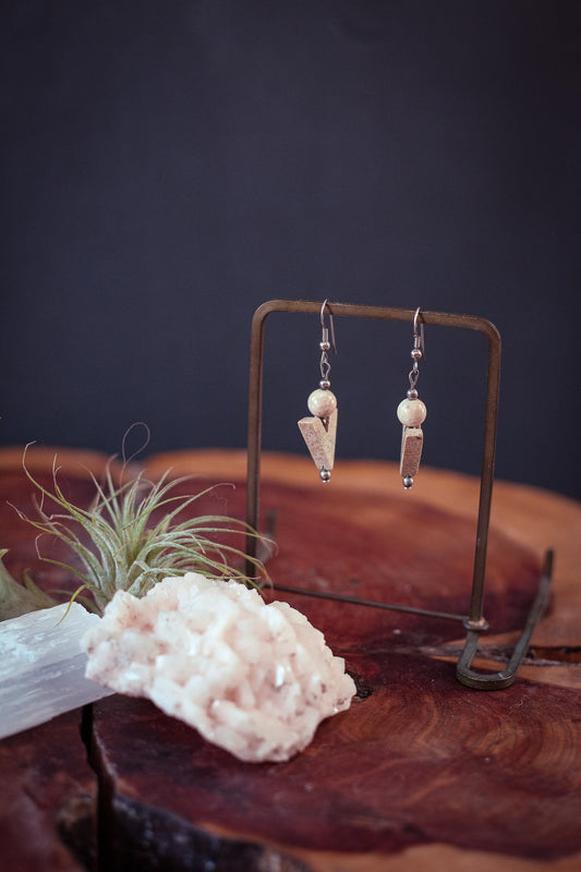 Jasper V shaped Drop French Hook Earrings - Vintage Estate Jewelry
