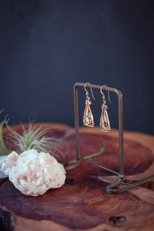 Maligano Jasper Wire Wrapped Earrings - Vintage Estate Jewelry Desert Landscape Jasper Earrings