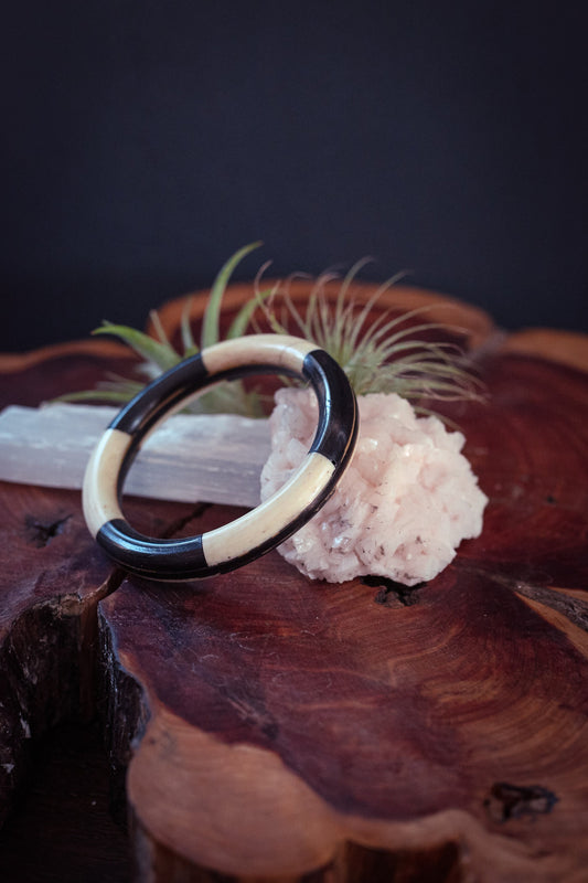 Vintage Bone & Wood Bracelet - Black and White Colorblock Graphic Bangle